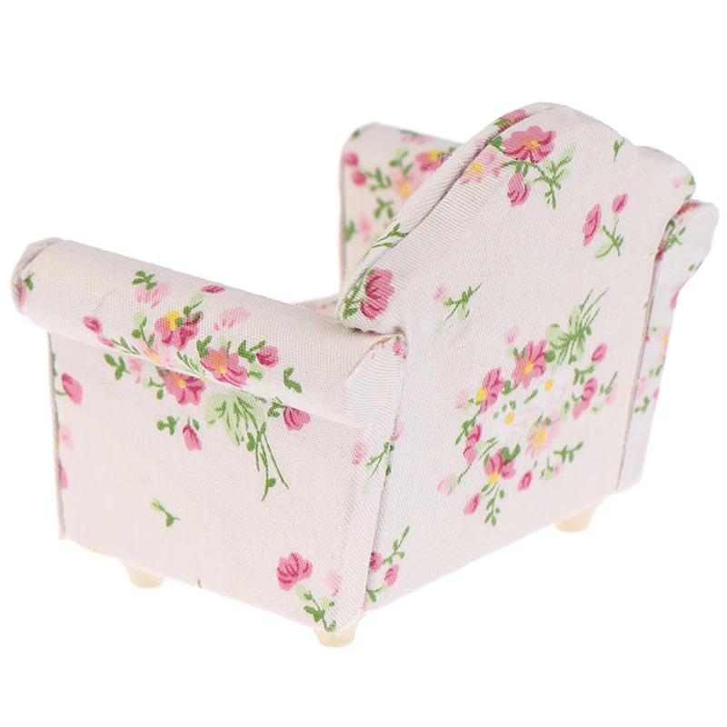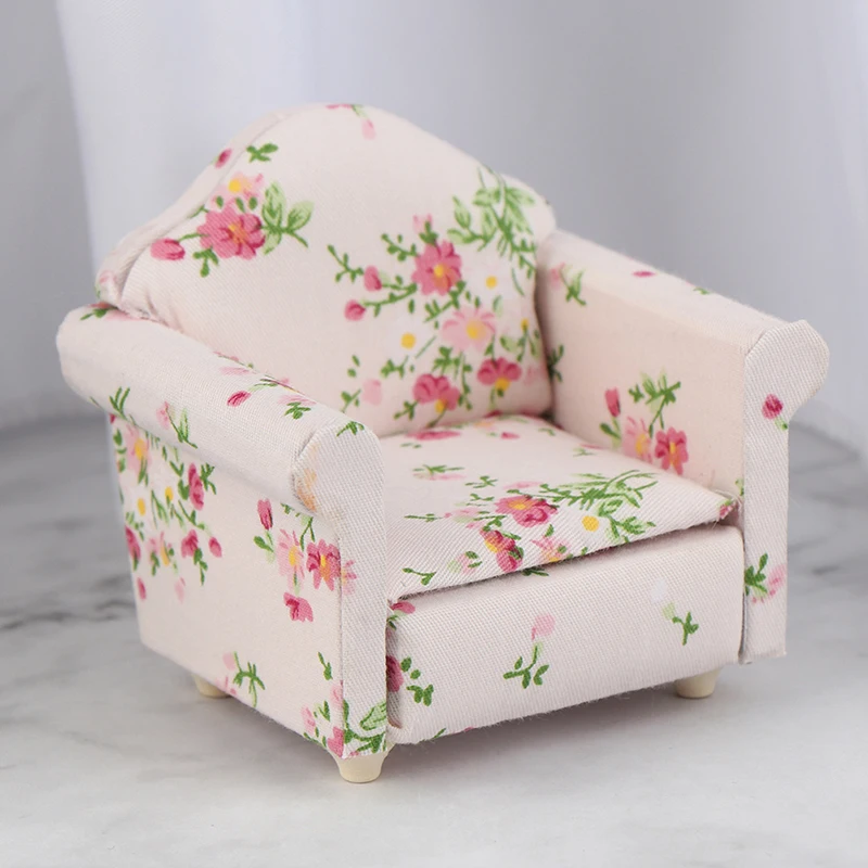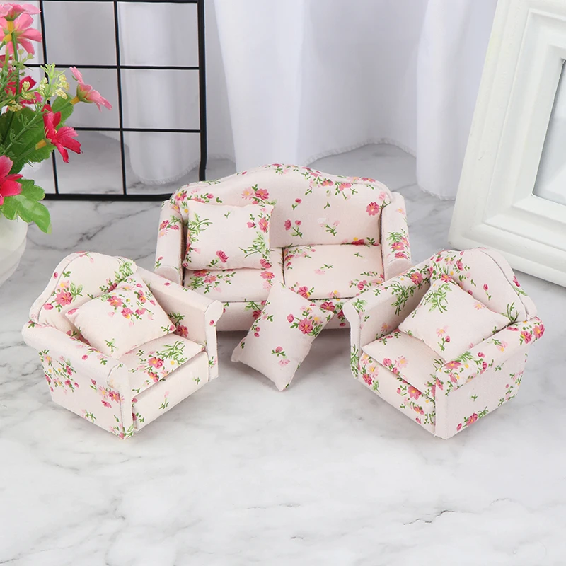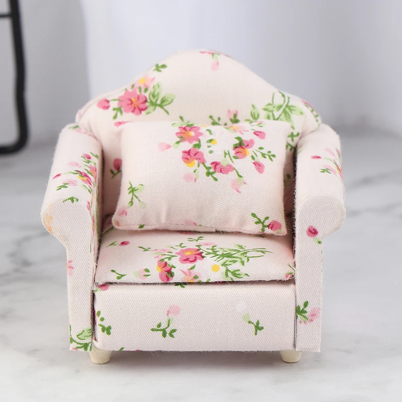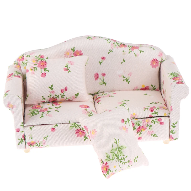 1/12 Scale sofas and cushions, perfect for interior model; Imitation sofas shape decorated with flower pattern