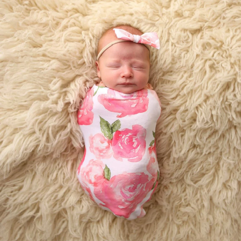 Infant Product for Baby Sleeping Bags 2Pcs/Set Newborn Envelope Swaddle Blanket Baby Cocoon Sleeping Bag Muslin Wrap Headband